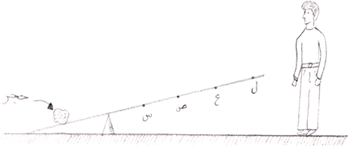 5. في الشكل المجاور ، عند أي نقطة يجب أن يتم الضغط إلى أسفل كي يتحرك الحجر بسهولة أكثر :