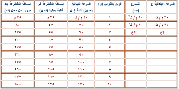 أما الفرق بين المسافة المقطوعة بعد انتهاء (4) ثوان وقبلها بعد انتهاء 3 ثوان فتساوي = 200 – 135 = 65 م