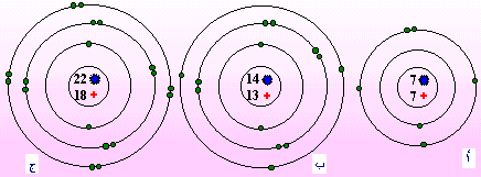 فيما يلي أشكال توضيحية لثلاث ذرات متعادلة لثلاث عناصر معروفة :