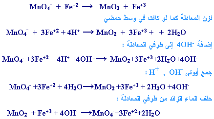 معادلة التفاعل الآتي بطريقة نصف التفاعل علماً بأن التفاعل يتم