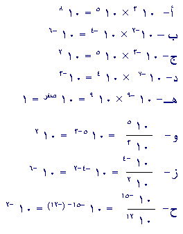 عند ضرب الاعداد الاسية تجمع الأسس وعند قسمتها تطرح الاسس ،